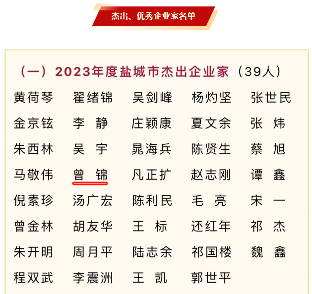 2月18日,盐城市委、市政府召开新春“第一会”——全市新型工业化推进大会,向“高”攀登,向“新”发力,向“前”而行,以“开年就是开工,开工就要实干”的奋进姿态,奋力谱写新型工业化盐城新篇章。会上公布了2023年度“争星创优”活动优胜企业和杰出优秀企业家名单。联鑫钢铁荣登工业五星级企业名单,公司总经理曾锦荣获2023年度盐城杰出企业家称号。
