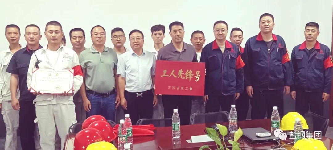 9月19日下午,大丰港经济开发区总工会副主席陈亚新在炼钢厂会议室为炼钢厂连铸车间乙班颁发“江苏省工人先锋号”,联鑫钢铁副总经理刘增成、工会主席卓忠凤、炼钢厂厂长金永和等参与了授牌仪式。